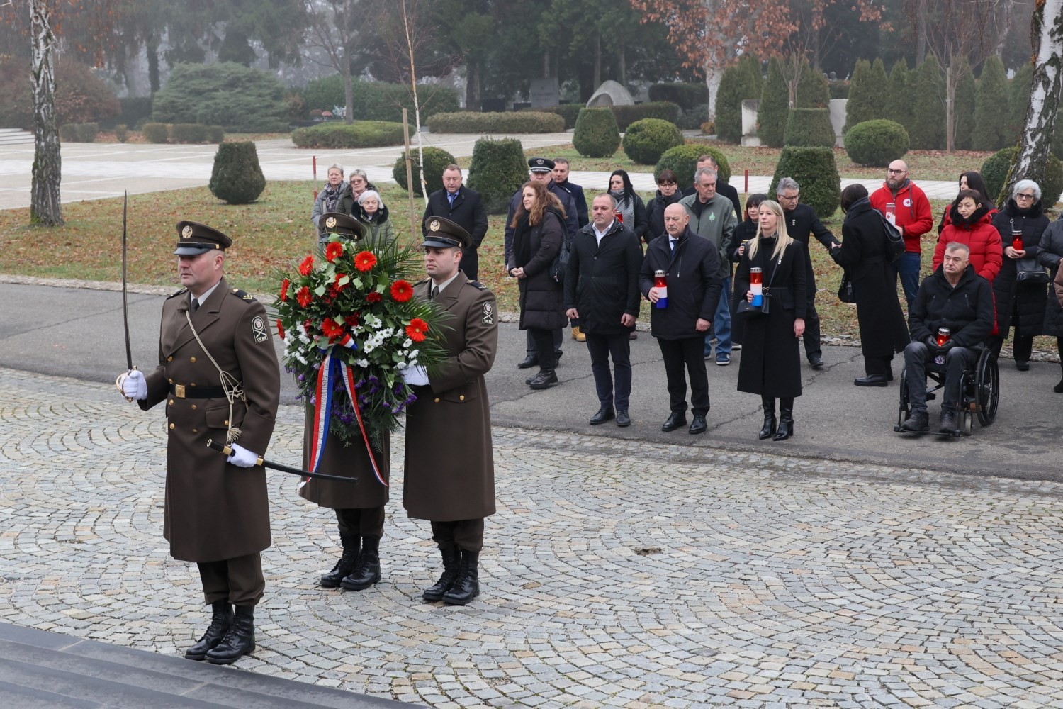 Uz ministra Medveda, u izaslanstvu koje je položilo vijence bili su ravnateljica Uprave za zatočene i nestale Ministarstva hrvatskih branitelja Ana Filko te ravnatelj Memorijalnog centra Domovinskog rata Vukovar Krunoslav Šeremet. Vijence su položili i izaslanik predsjednika Republike Hrvatske brigadir Nikola Mostarac, izaslanik predsjednika Hrvatskog sabora saborski zastupnik Ante Deur te izaslanica gradonačelnika Grada Zagreba Suzana Hloverka Noršić.