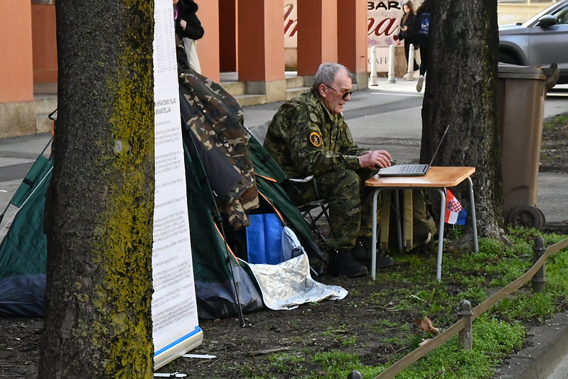 Ispred zgrade Hrvatskog sabora već gotovo dva tjedna stoji jedan čovjek. Nema pozornice, nema mikrofona, nema političkog pokreta iza sebe. Samo mali šator, veliki baner i jedno pitanje.