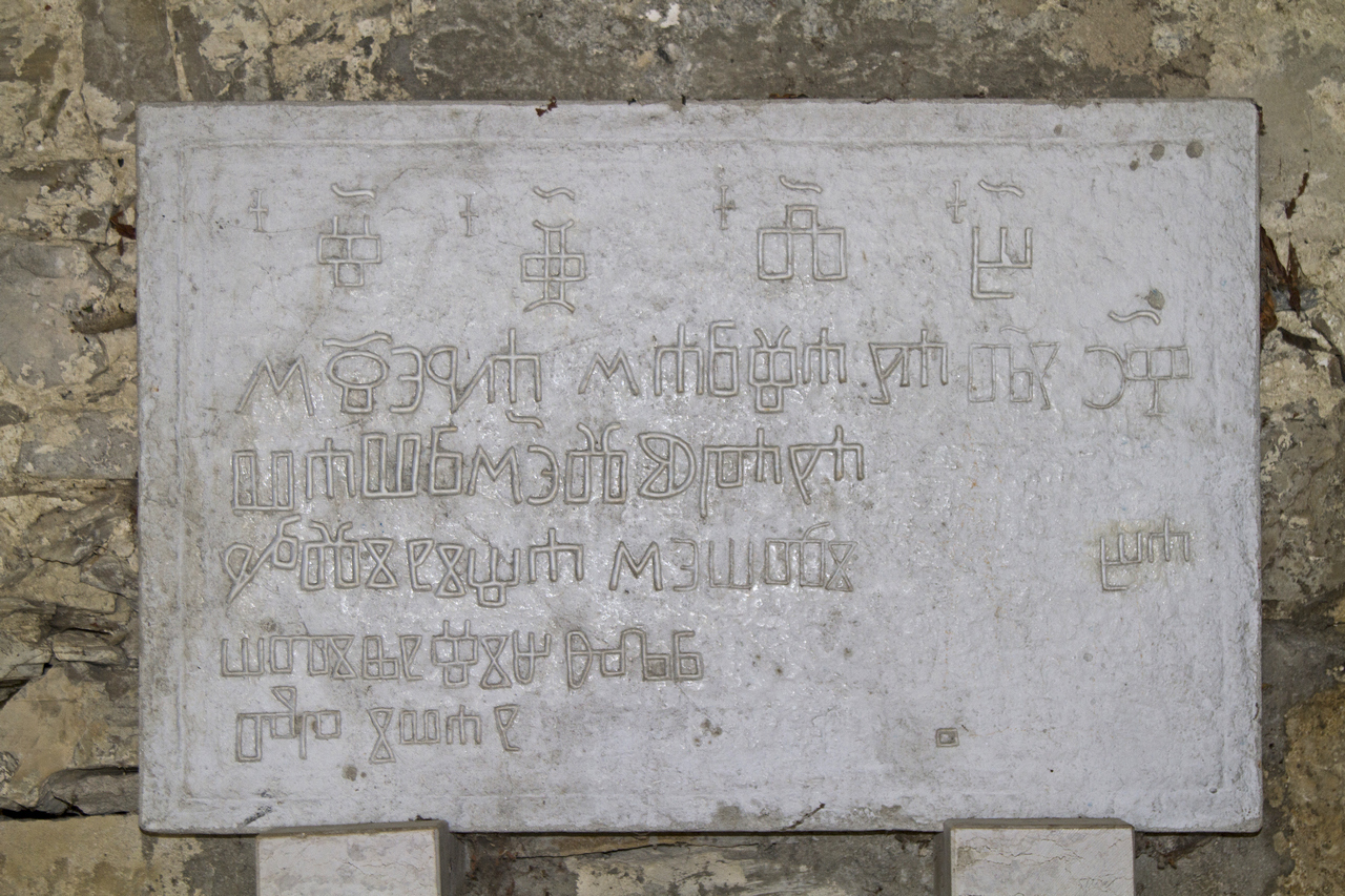 Najstariji su sačuvani hrvatski spomenici na kojima je glagoljski natpis uklesan u kamen iz 11. i 12. st.: Plominski natpis, Supetarski ulomak, Grdoselski ulomak, Valunska ploča, Krčki natpis, Bašćanska ploča… Oni su pisani glagoljicom prijelaznoga oblika iz oble prema uglatoj.