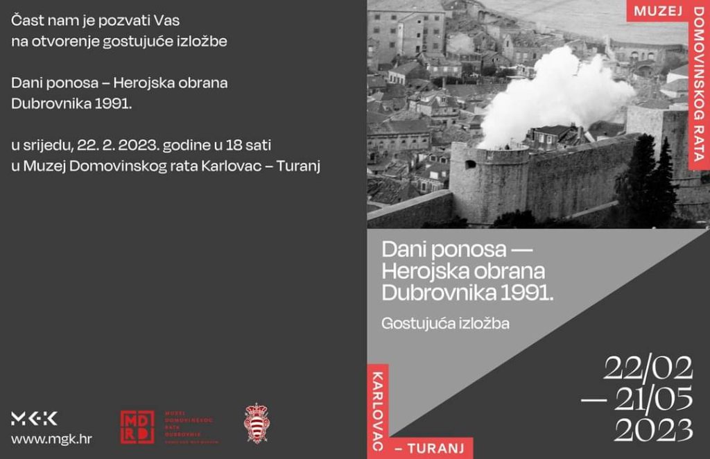 U sklopu sveobuhvatnog muzejskog programa obilježavanja 30. obljetnice uspješne herojske obrane grada Dubrovnika 1991. godine, Muzej Domovinskog rata Dubrovnik, 23. veljače 2023. godine, u Karlovcu ( Turanj – Muzej Domovinskog rata) organizira stvarnu i virtualnu izložbu ” dani ponosa – Herojska obrana Grada 1991. ” kojom je cjelovito obrađeno najteže razdoblje rata od početka općeg agresorskog napada 1. listopada do 6. prosinca 1991. godine.