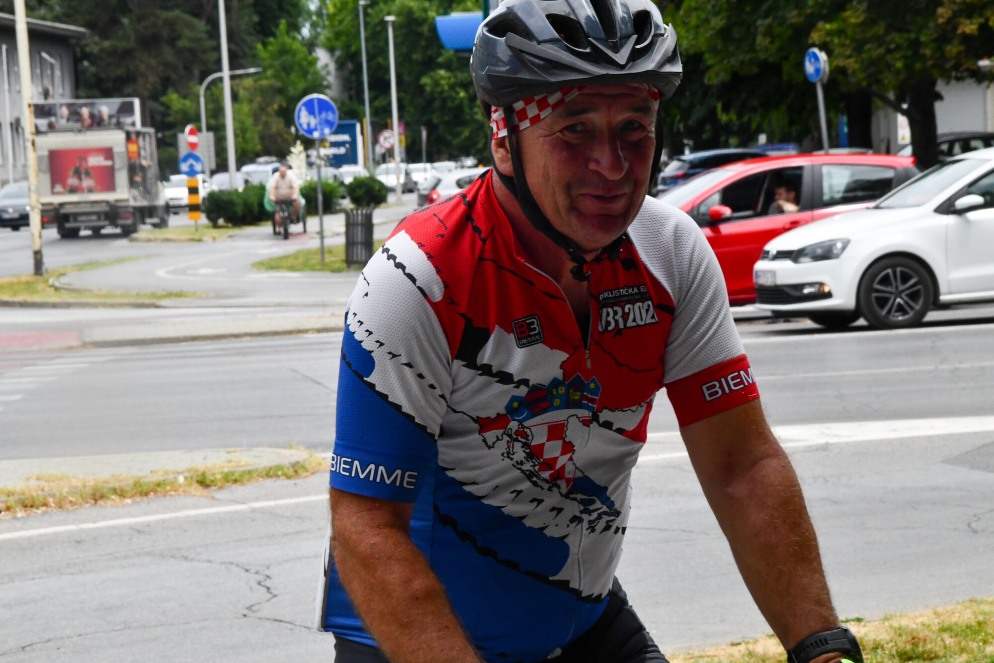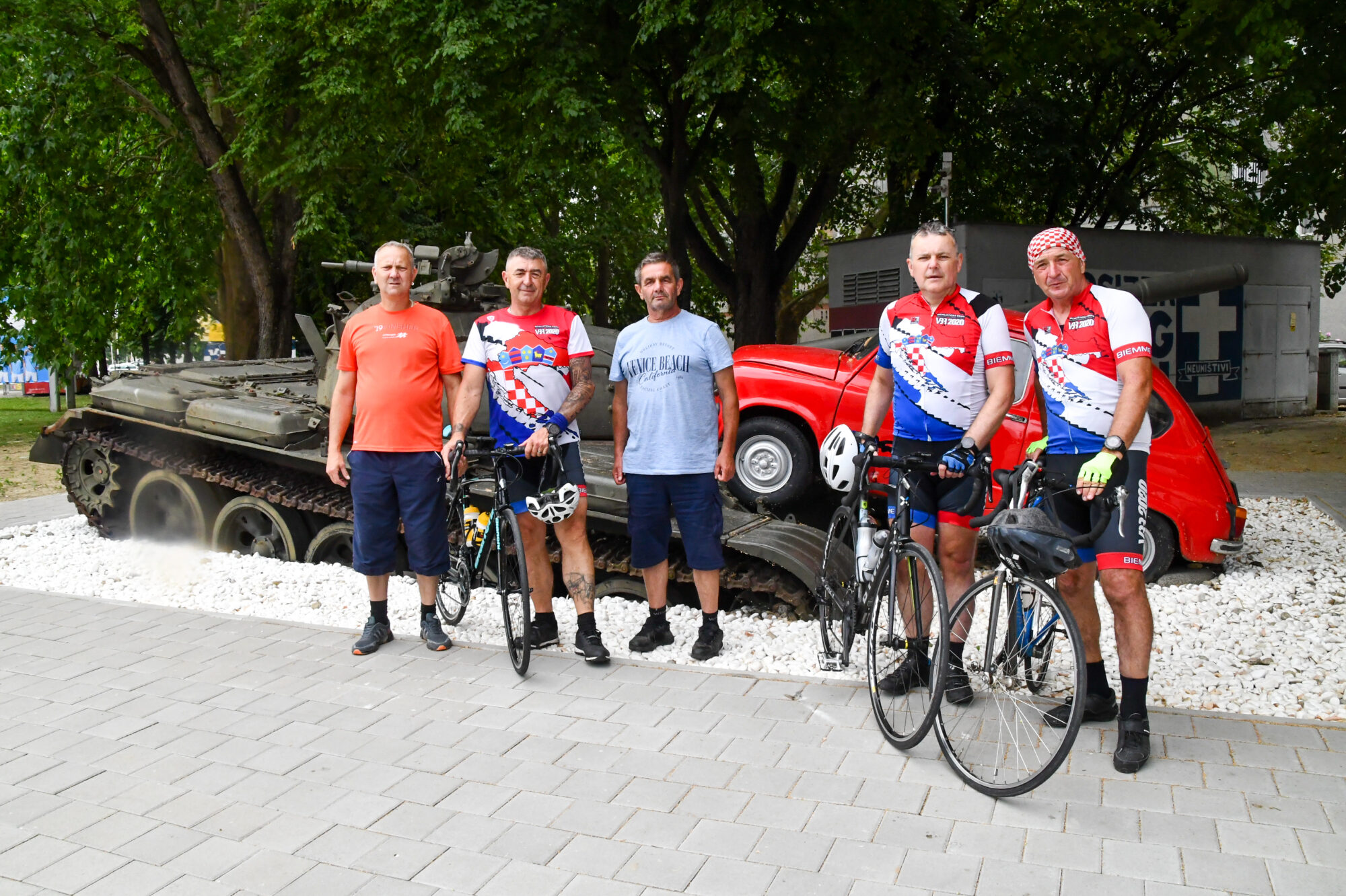 OSIJEK, 27. lipnja 2025. – Biciklistička ekipa Virovitičko-podravske županije „VBR“ (Veterani, Branitelji, Rekreativci), predvođena Matom Bubašem, predsjednikom HVIDR-e Virovitičko-podravske županije i predsjednik Odbora za branitelje Virovitičko-podravske županije, stigla je u Osijek nakon 95 kilometara duge memorijalne biciklističke vožnje, kojom su odali počast simbolu otpora iz Domovinskog rata – Crvenom fići.