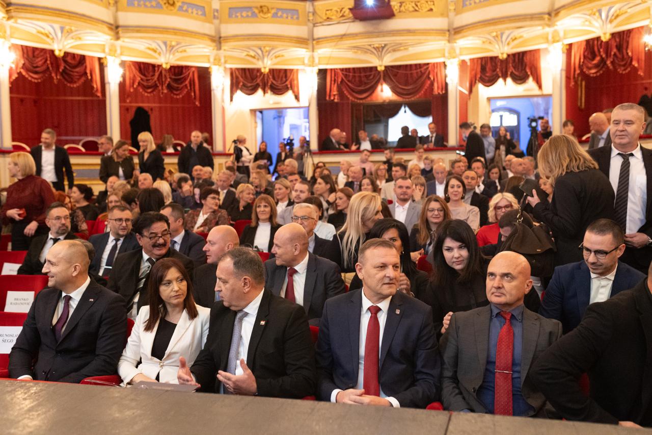 Osijek, 13. studeni 2024. – U Hrvatskom narodnom kazalištu u Osijeku svečano je obilježeno 150 godina rada Kliničkog bolničkog centra Osijek, jednog od stupova hrvatskog zdravstvenog sustava. Pod visokim pokroviteljstvom Vlade Republike Hrvatske, Osječko-baranjske županije i Grada Osijeka, brojni ugledni gosti i suradnici okupili su se kako bi odali priznanje generacijama liječnika, medicinskog osoblja i svih djelatnika koji su kroz povijest oblikovali bolnicu i njezin neizmjerni doprinos zdravlju nacije.