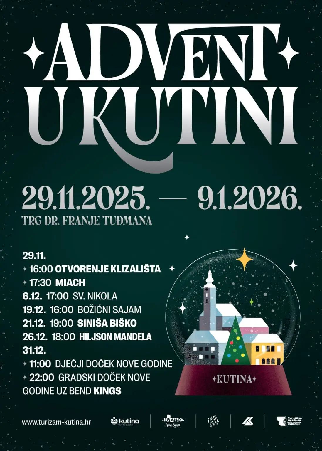 KUTINA, 25. studeni 2025. – Kutina se i ove godine pretvara u bajkoviti blagdanski prizor – od 29. studenoga 2025. do 9. siječnja 2026. Trg dr. Franje Tuđmana zasjat će u tisućama lampica, postati srce najtoplije božićne priče u Moslavini i mjesto na kojem će se stvarati nezaboravne uspomene. Advent u Kutini 2025. donosi spoj tradicije, moderne blagdanske zabave, bogate gastronomske ponude i raznovrsnih programa za sve generacije.