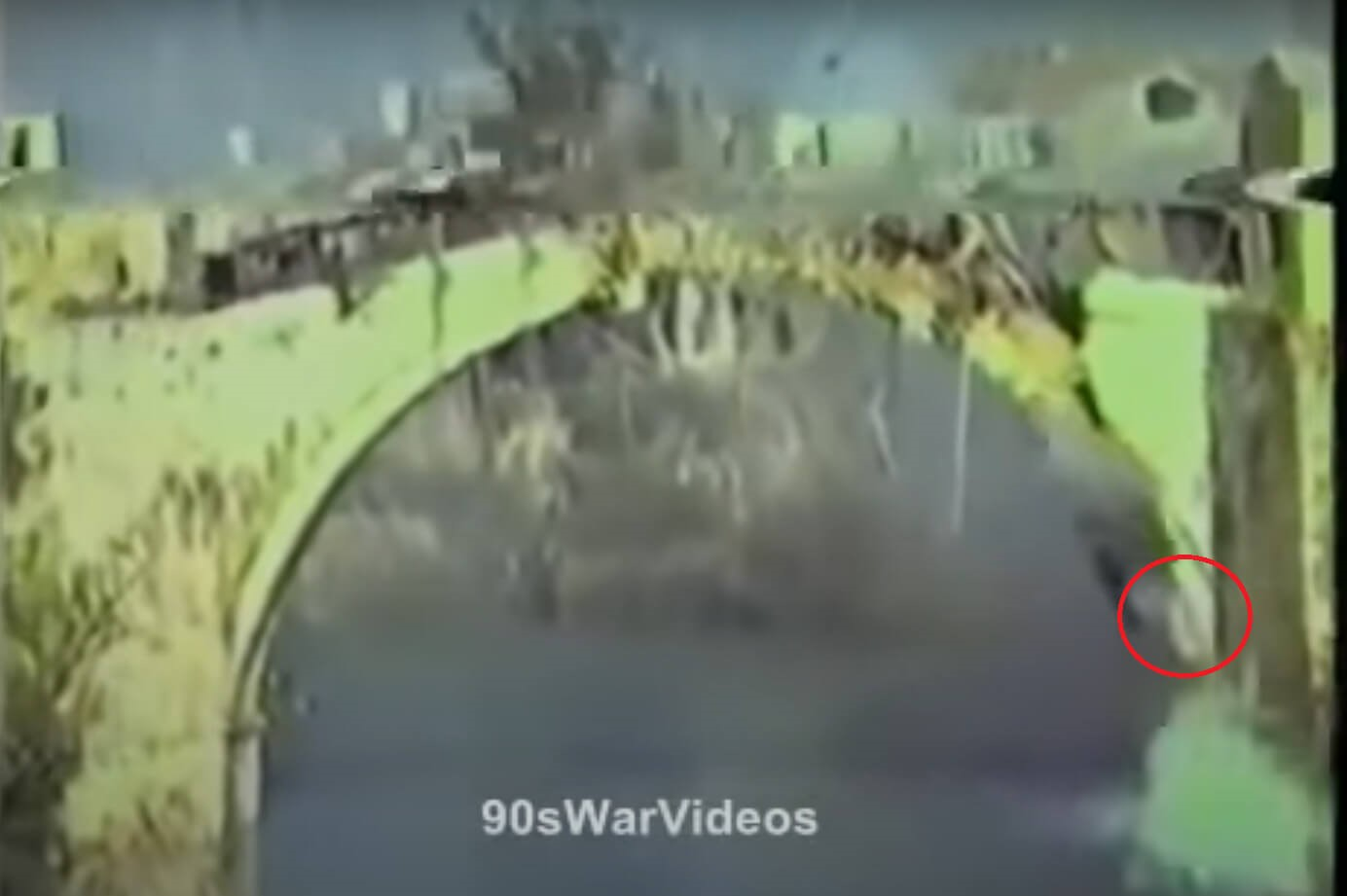 Prema snimcima dviju kamera vidi se da je most prije rušenja pretrpio jednu snažnu eksploziju na njegovom najdebljem dijelu bliže lijevoj obali. Da se radi o aktiviranoj eksploziji da se zaključiti (stručnjaci su to pokusom i dokazali) po detonirajućem štapinu koji se vidi na Neretvi. Prilikom te prve eksplozije most nije doživio značajno oštećenje. Na snimci (2:46) da se primijetiti da je otpao jedan veliki kamen, otprilike sa sredine mosta. Osim toga, na snimkama se vidi da je most pretrpio granatiranje i sa sjeverne strane, odnosno s položaja Armije BiH, što je također potvrdio Sud u Haagu u prvostupanjskoj presudi, s dozom sumnje da je to sjeverno granatiranje mosta mogao izvesti i HVO-a s Planinice.