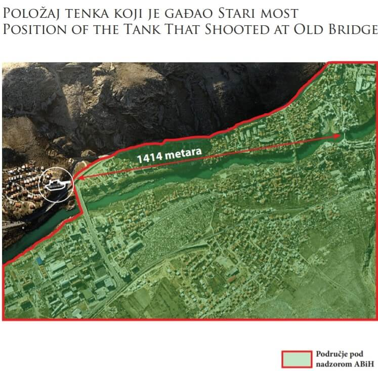 Nadalje, zanimljivo je da je snimano granatiranje 8. studenog i rušenje 9. studenog na veoma opasnim mjestima, nedaleko od linija razgraničenja. Osim toga, postavlja se pitanje, zašto Armija BiH nije djelovala cijeli dan 8. studenoga na tenk koji je gađao Stari most, a bio je udaljen manje od 200 metara od njihovih linija (slika 2.).