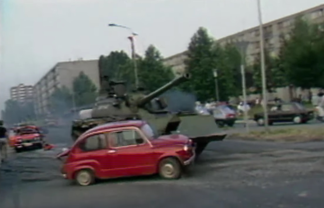 Na tom smrtonosnom pohodu, tenk je pregazio dva osobna vozila – Yugo i Citroen – pokazujući svu bešćutnost vojne mašinerije prema civilnom životu koji se do tada još pokušavao držati svakodnevice.