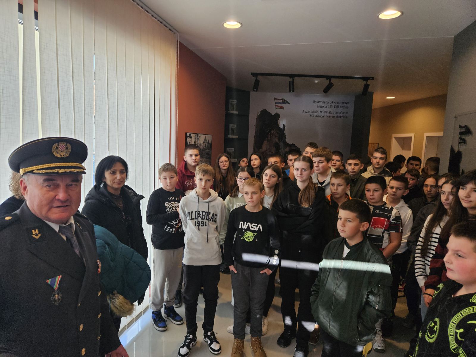 Laslovo, 25. studeni 2024. – Učenici viših razreda Osnovne škole Laslovo u ponedjeljak 25. studenog, imali su priliku posjetiti novootvoreni Muzej Domovinskog rata u Laslovu, mjesto koje čuva potresne priče o hrabrosti, stradanju i nadi. U muzeju su ih dočekali laslovački branitelji Kelemen Dežo i Stjepan Deže, kao i ratni zapovjednik obrane Laslova, Ladislav Kočiš, koji su učenicima približili događaje iz vremena Domovinskog rata.