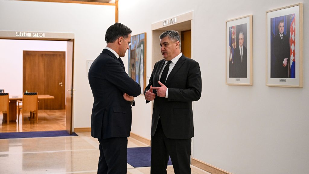 Glavni tajnik NATO-a Mark Rutte boravio je u ponedjeljak u radnom posjetu Republici Hrvatskoj, tijekom kojeg se sastao s predsjednikom Republike Zoranom Milanovićem, predsjednikom Hrvatskoga sabora Gordanom Jandrokovićem te predsjednikom Vlade Andrejem Plenkovićem.