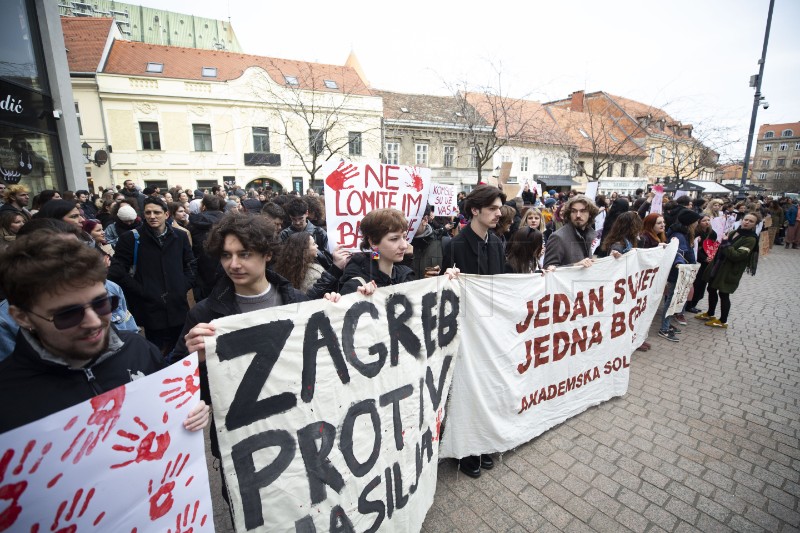 U Zagrebu su na ispunjenom Europskome trgu, studenti nosili brojne transparente poput – Ruke su vam krvave, Dva pisma poruka ista, 15 minuta za žrtve korupcije, Srbi ruše vladu, u nama bude nadu, Solidarnost sa svim žrtvama represivnog sustava u Srbiji, Jedan svijet jedna borba, Akademska solidarnost, Solidarno sa studentima, Hrvatska uz blokade, Komšije su uz vas, Ona se budi, Zatvorene institucije, otvorene oči, te poruka Zajedništvo ispisana ćirilicom.