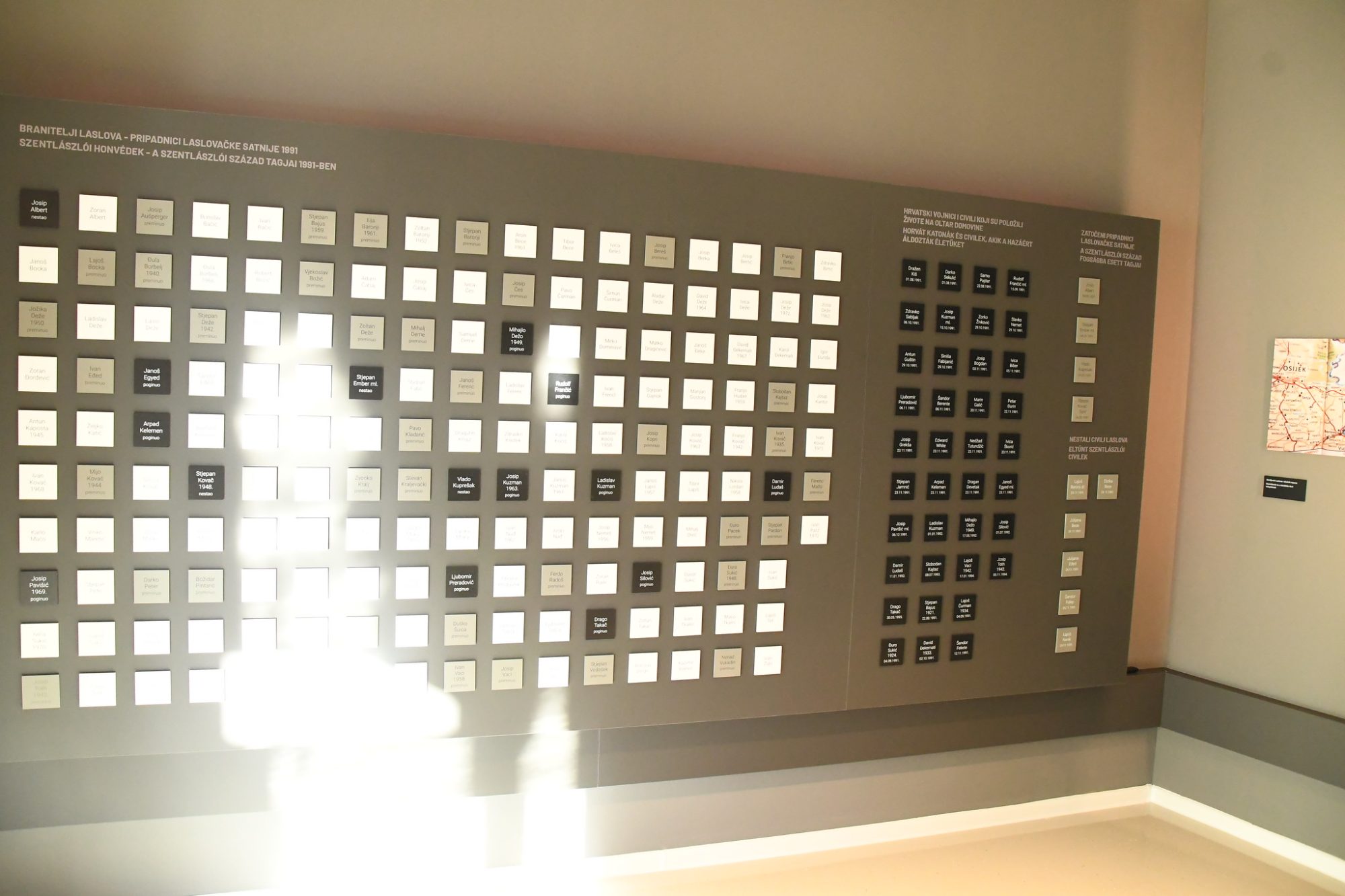 - Crni kvadratići s imenima – poginuli branitelji.