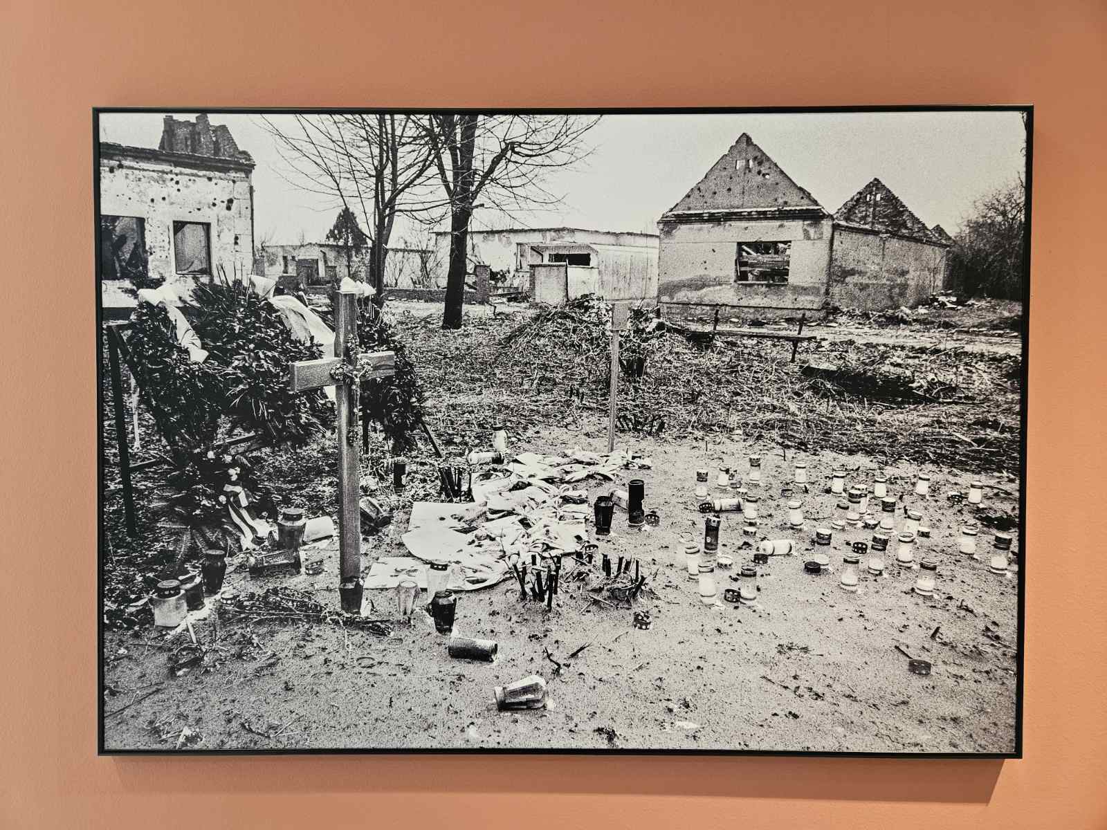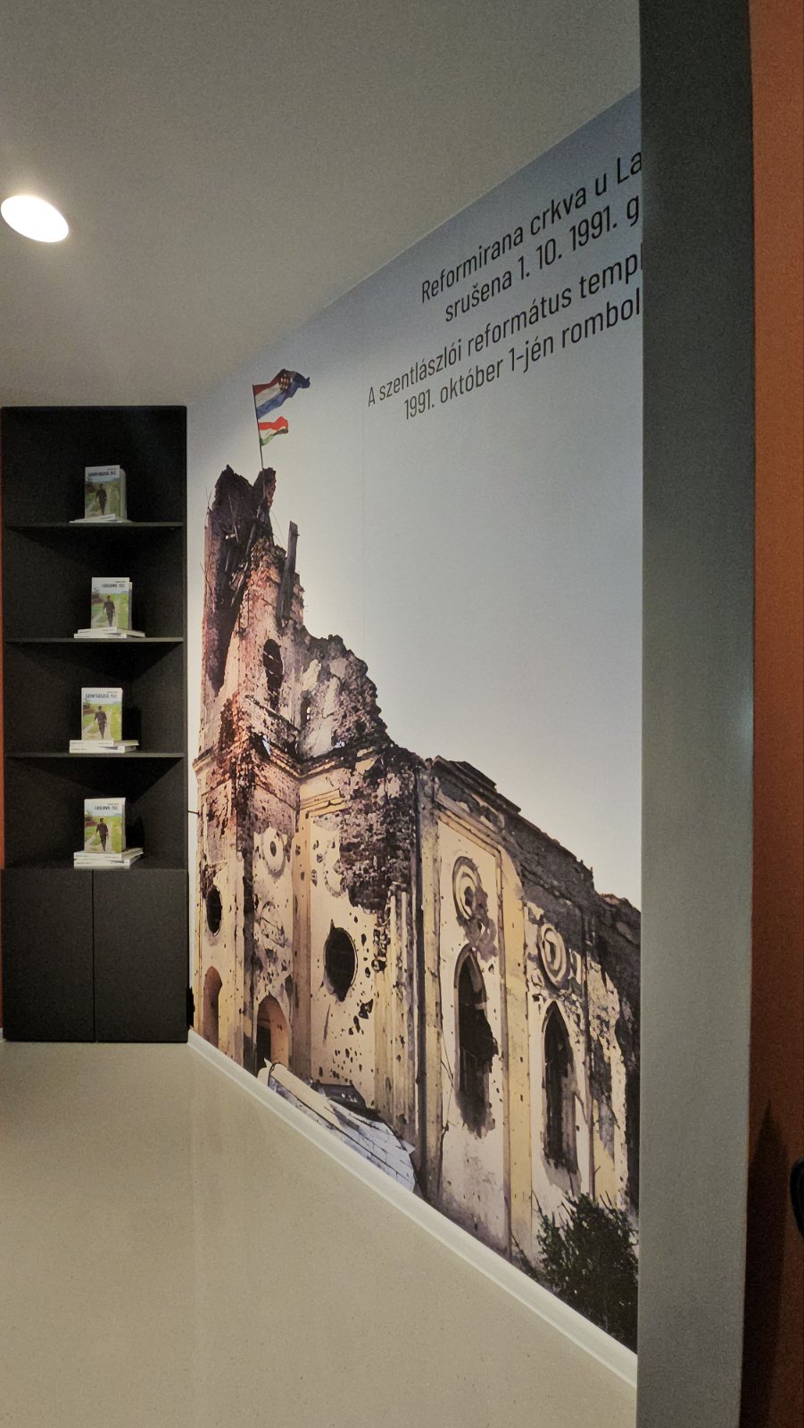 Već na samom ulazu posjetitelji nailaze na snažan simbol – veliku fotografiju srušene laslovačke crkve iz listopada 1991. godine. Crkva, kao simbol Laslova, danas stoji s ponosom, a na vrhu njezine fotografije vijore se hrvatska i mađarska zastava, koje svjedoče o neraskidivom zajedništvu dva naroda.