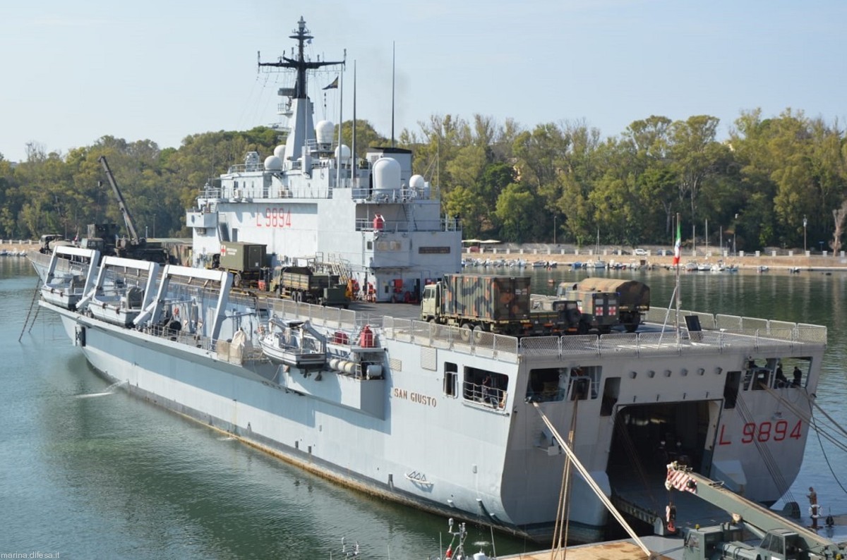 Brod San Giusto (L9894) porinut je 1993., a u operativnu uporabu ušao je u lipnju 1994. godine. Izgrađen je u brodogradilištu blizu Genove, a matična mu je luka Brindisi.